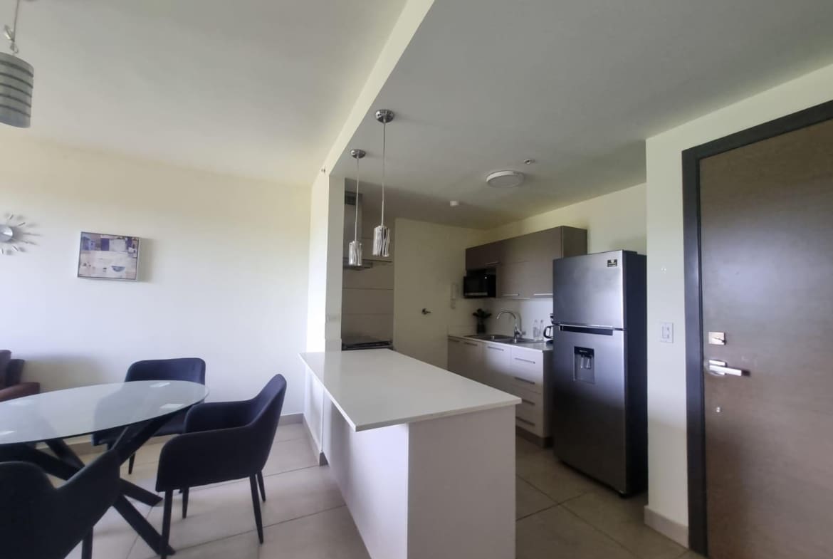 Se alquila apartamento en Ph Madeira, un exclusivo edificio de apartamentos de 1, 2 y 3 habitaciones que le brinda amenidades únicas. El lugar ideal para ver tu familia crecer. Un proyecto integral que promueve el bienestar físico y mental gracias al contacto y a la convivencia con la naturaleza y los buenos vecinos. El apartamento es totalmente amoblado, cuenta con su línea blanca completa, aire acondicionado, cortinas rollers. 64.72m² 1 Recamara amplia con Walking closet y baño completo Medio baño Balcón Cocina Abierta 1 Estacionamiento 1 Deposito Cuenta con dos niveles de amenidades: con piscina, área BBQ, gimnasio y salón de reuniones y espectaculares vistas a la montaña.