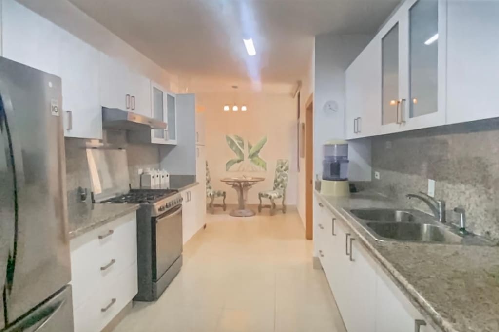 Descubre este espacioso y moderno apartamento que combina lujo y comodidad a la perfección para tu familia. La sala comedor es amplia y elegante, ideal para reuniones y momentos de descanso. La cocina está completamente equipada con línea blanca, incluyendo refrigeradora, estufa con horno y extractor. El apartamento dispone de tres amplias recámaras, además de cuarto y baño de servicio. La recámara principal cuenta con un walk-in closet, baño privado con área de tocador y dos lavamanos. Con 4.5 baños diseñados con acabados modernos, dos estacionamientos asignados, aires acondicionados y persianas, este apartamento ofrece todas las comodidades que necesitas para vivir en un entorno de lujo y confort. Además, disfruta de impresionantes vistas al mar que realzan la atmósfera serena de este hogar. La excelente conectividad con el resto de la ciudad facilita la movilidad hacia el centro de Panamá y el Aeropuerto Internacional de Tocumen. Esta zona segura y tranquila es ideal para familias y profesionales, ofreciendo áreas verdes, ciclovías y recreativas para un estilo de vida activo y saludable. Este apartamento en Parque del Mar 1 combina lujo, comodidad y una ubicación inmejorable. ¡No pierdas la oportunidad de convertir este espacio en tu nuevo hogar! LÍNEA BLANCA • Refrigeradora • Estufa con horno • Extractor