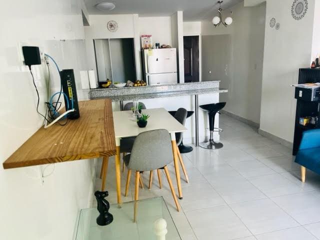 Se vende apartamento amoblado de 78 mts que consta de 2 recámaras, 2 baños, sala / comedor, cocina, área de lavandería, balcón y 1 estacionamiento. El apartamento tiene todas las paredes de la sala / comedor cubiertas de estuco veneciano. El edificio está sobre la Via España y a pasos de la estación del Metro de la Fernández de Córdoba. El edificio tiene un área social completa con piscina, gimnasio, tanque de reserva de agua, conserje y seguridad. El apartamento está alquilado por lo que hay que hacer cita con 1 día de antelación.