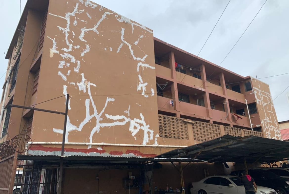 Lote de terreno sobre el cual está construido un edificio de cuatro niveles de uso residencial y comercial. Terreno de forma rectangular con topografía mayormente plana. La planta baja consiste de un local comercial, pasillo techado y una escalera de acceso a los niveles superiores. El primer alto consiste en cuatro apartamentos, balcones, un pasillo-balcón, una escalera y un área de tendedero. El segundo alto consiste en cuatro apartamentos, balcones, un pasillo-balcón y una escalera. El tercer alto consiste en cuatro apartamentos, balcones y un pasillo-balcón.