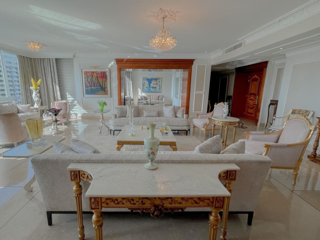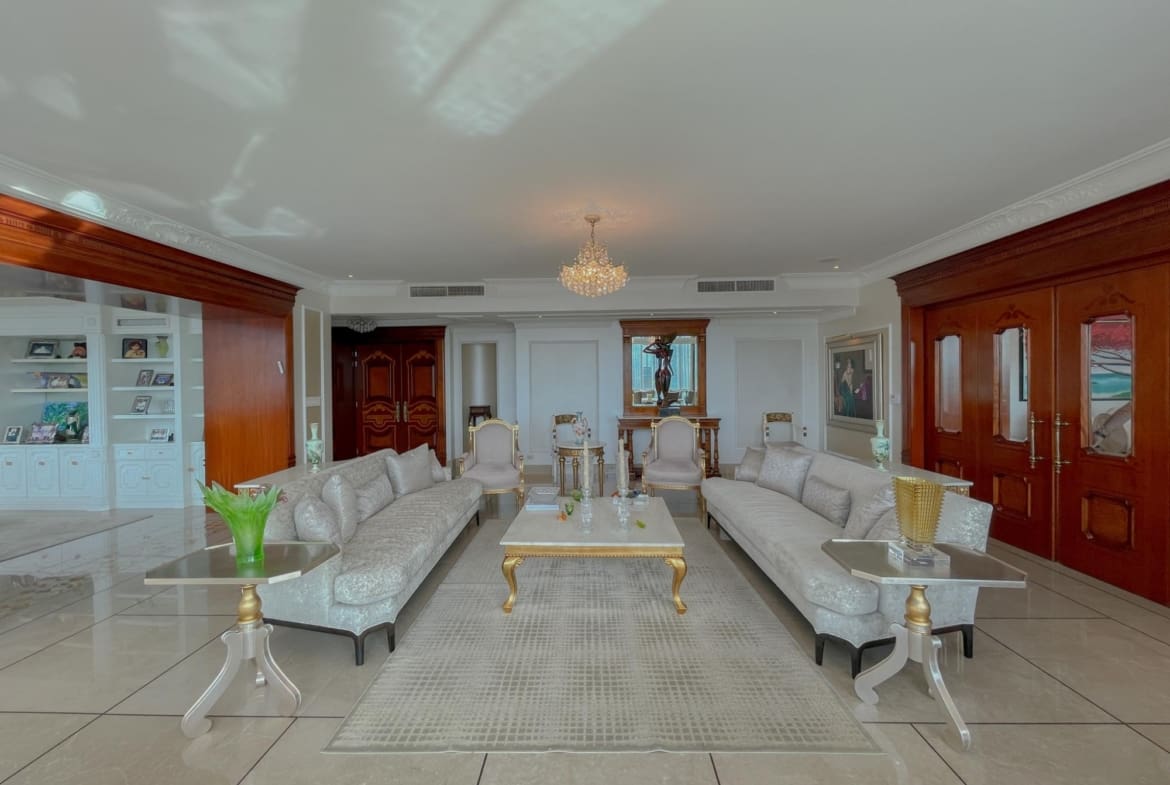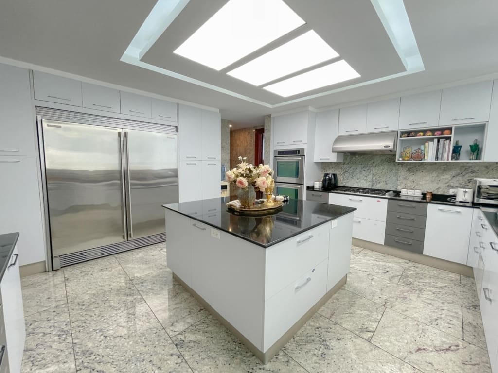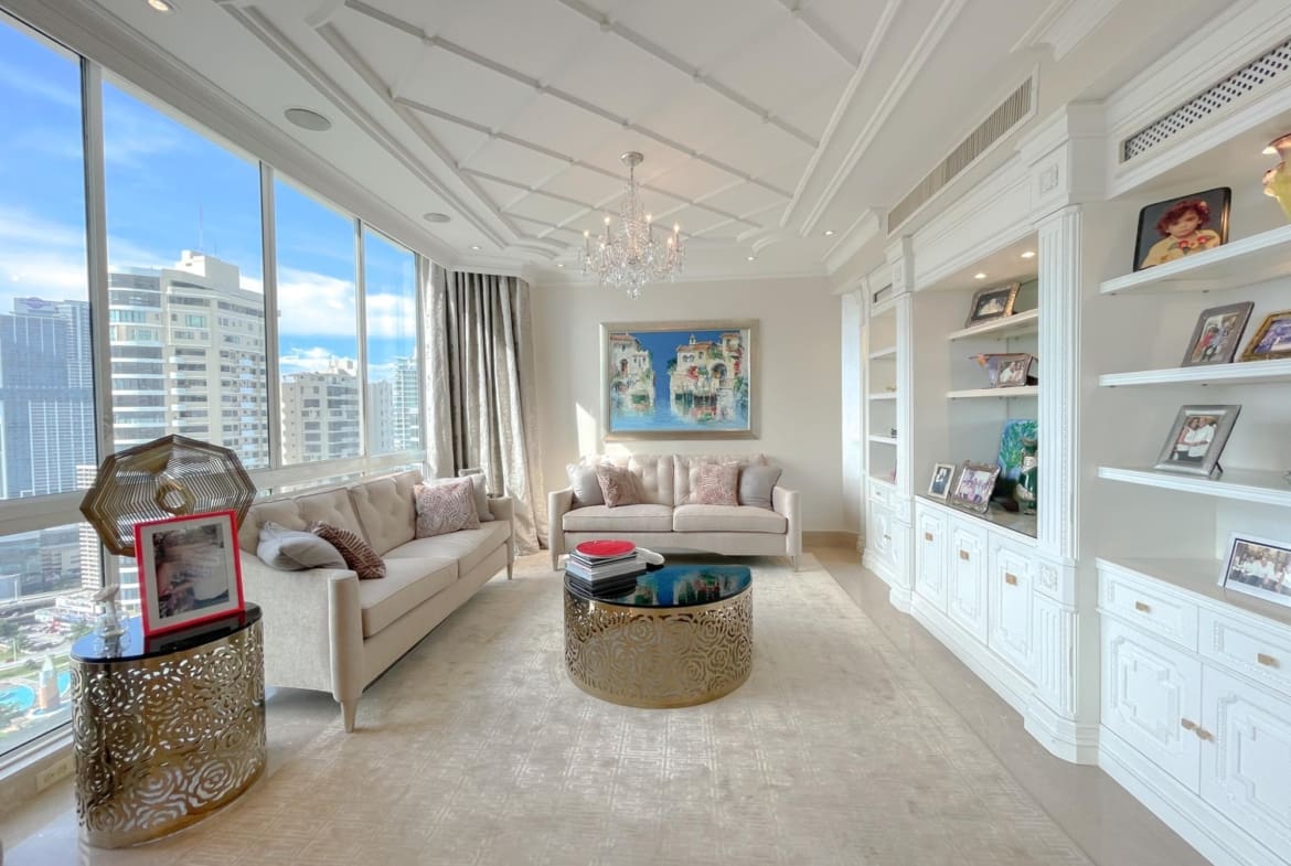 Punta Roca – Punta Paitilla – Se vende Lujoso apartamento de 526m2 distribuidos en amplia sala con iluminación natural y finos acabados, comedor, estudio, sala familiar, medio baño de visita, balcón con vista al mar, cocina con desayunador, 4 recámaras completas, lavandería, cuarto y bano servicio, 4 estacionamientos, 1 deposito. El edificio cuenta con area social completa con piscina de adultos y niños, gimnasio, cancha de squash y basketball, jacuzzi, área de juegos para niños, sala de eventos y mas. Lujoso lobby, 2 elevadores principales 1 elevador de servicio, estacionamientos de visita, seguridad 24/7.