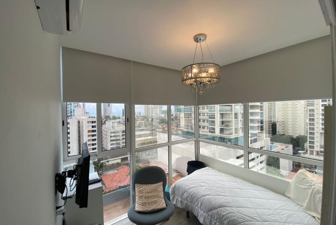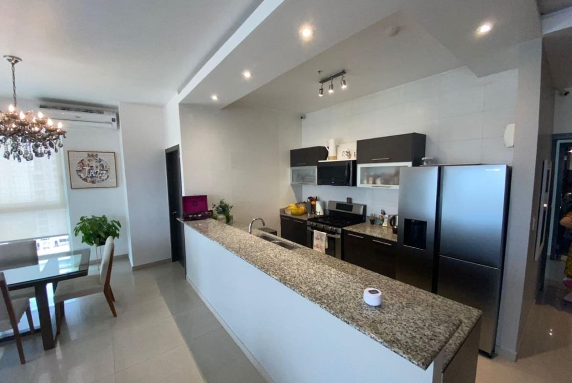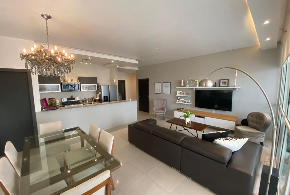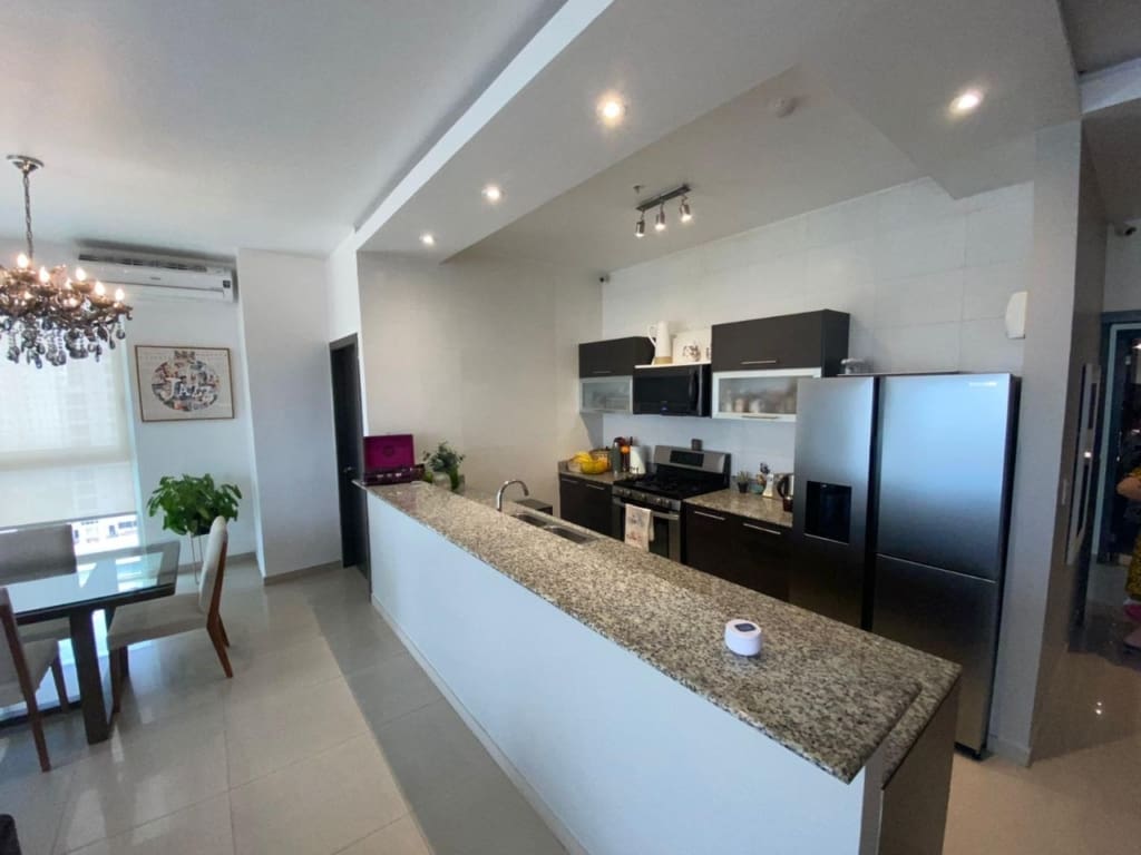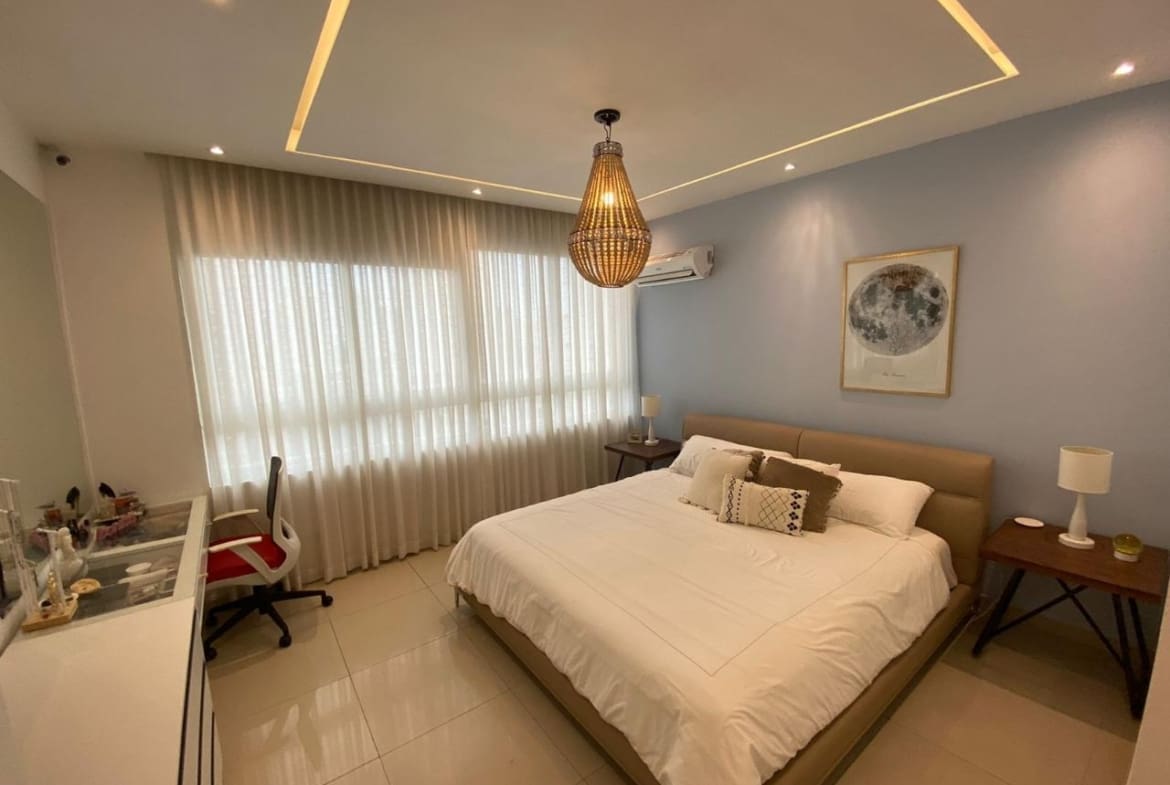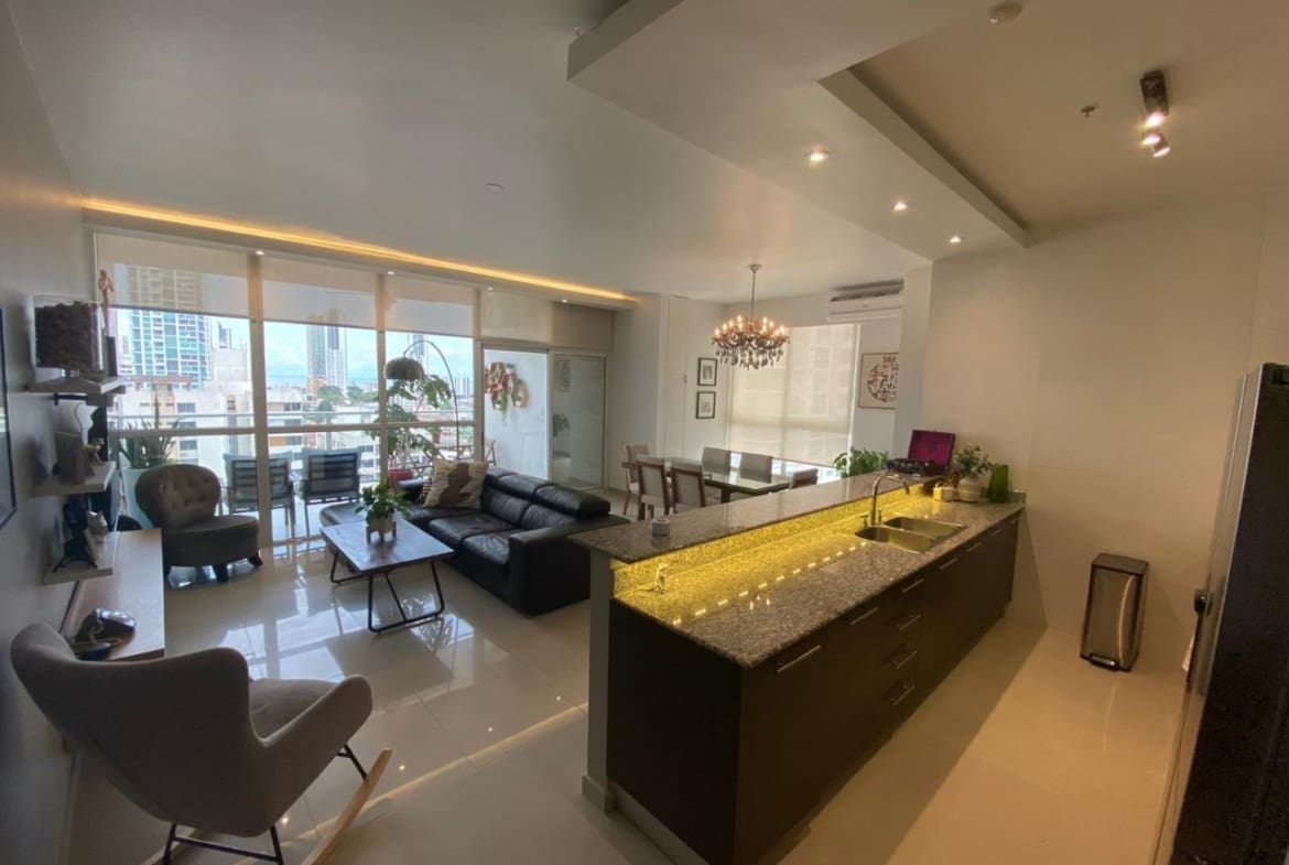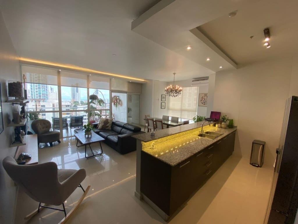 PH Quadrat en San Francisco es una joya residencial que ofrece comodidad y elegancia. Con una ubicación cercana al Parque Omar, este edificio se encuentra en una zona privilegiada que combina la tranquilidad del entorno con la proximidad a diversas comodidades urbanas. El apartamento tiene una distribución de dos habitaciones y dos baños, ocupando un espacioso total de 138 metros cuadrados. El diseño interior destaca por su cocina de concepto abierto, que fluye armoniosamente hacia la sala y el comedor, creando un espacio acogedor y moderno para la vida diaria. Las ventanas de pared a pared proporcionan vistas impresionantes de la ciudad, permitiendo que la luz natural llene el espacio y creando una atmósfera luminosa y aireada. Estas vistas panorámicas ofrecen una perspectiva única del entorno urbano, haciendo que cada momento en el apartamento sea una experiencia visual única. El apartamento cuenta con dos estacionamientos, lo cual es una comodidad invaluable en una zona donde el espacio para estacionar puede ser limitado. Este detalle agrega practicidad y conveniencia a tu vida diaria. En resumen, este apartamento en PH Quadrat es más que una vivienda; es un refugio elegante con todas las comodidades modernas y vistas impresionantes que hacen de cada día una experiencia especial.