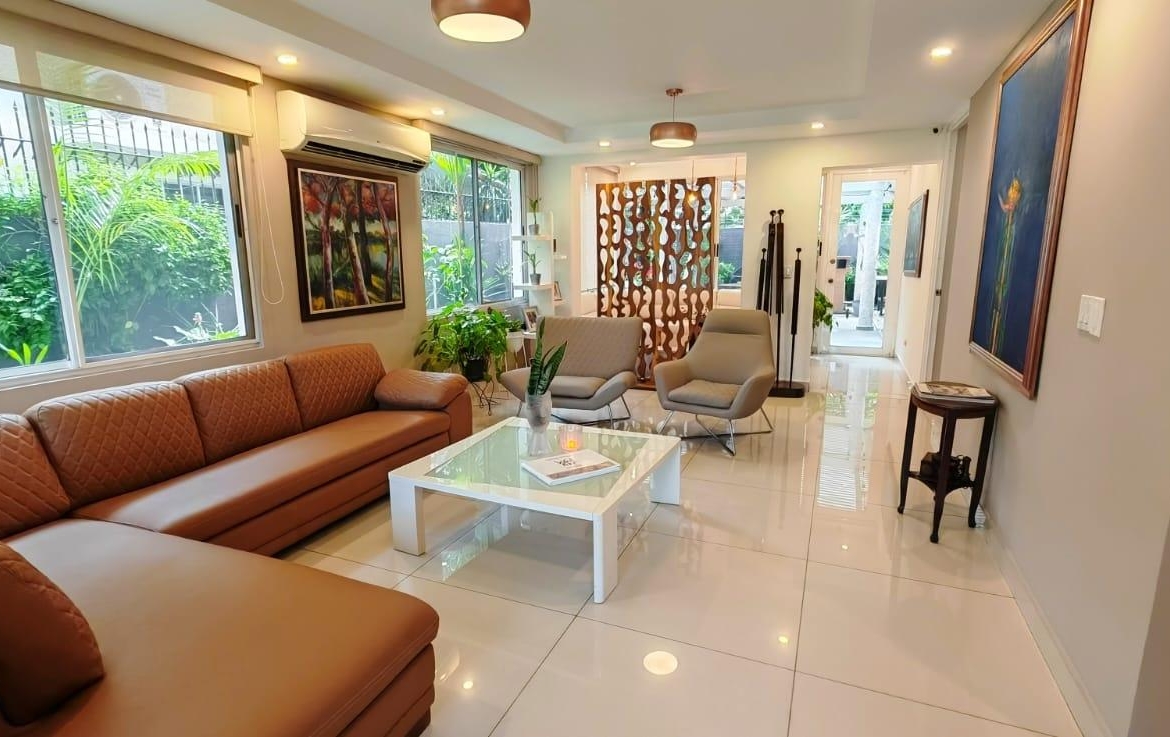 Situada en el Residencial Costa Bella, en Costa del Este, esta magnífica casa ofrece una combinación perfecta de lujo y funcionalidad. Esta propiedad cuenta con un terreno de 449 m² y un área de construcción de 282 m². Al llegar a la propiedad nos encontramos con un recibidor que nos da paso a la espaciosa sala que cuenta con dos ambientes ideales para para recibir a tus invitados y disfrutar de momentos especiales. Separado de la sala, nos encontramos con el comedor formal ideal para cenas elegantes y celebraciones especiales. Un espacio muy especial para toda la familia es el den, lugar ideal para domingos de partidos. Su amplia cocina recién remodelada con acabados modernos perfecta para los amantes de la gastronomía. Su terraza espaciosa nos brinda el ambiente per perfecto para relajarse al aire libre, disfrutar de una barbacoa o simplemente leer un buen libro. En el segundo nivel de esta amplia residencia encontramos 3 habitaciones, cada una con su propio baño privado, ofreciendo máxima comodidad y privacidad, y la oficina de mamá, el espacio ideal para trabajar desde casa. La casa está equipada con paneles solares, lo que permite un ahorro significativo en energía y contribuye a un estilo de vida sostenible y eficiente. Amplios espacios para 4 vehículos, garantizando comodidad y seguridad para toda la familia y sus invitados.