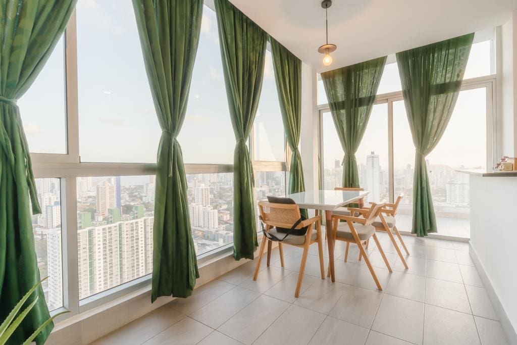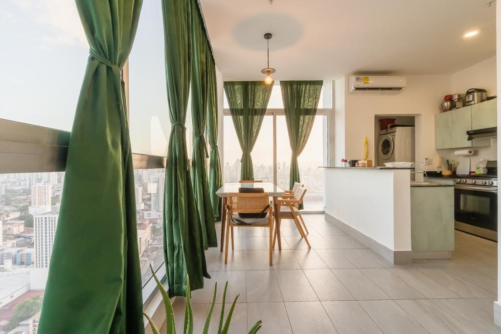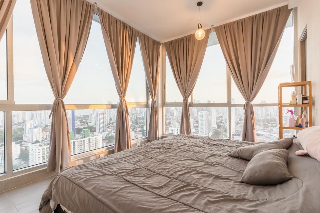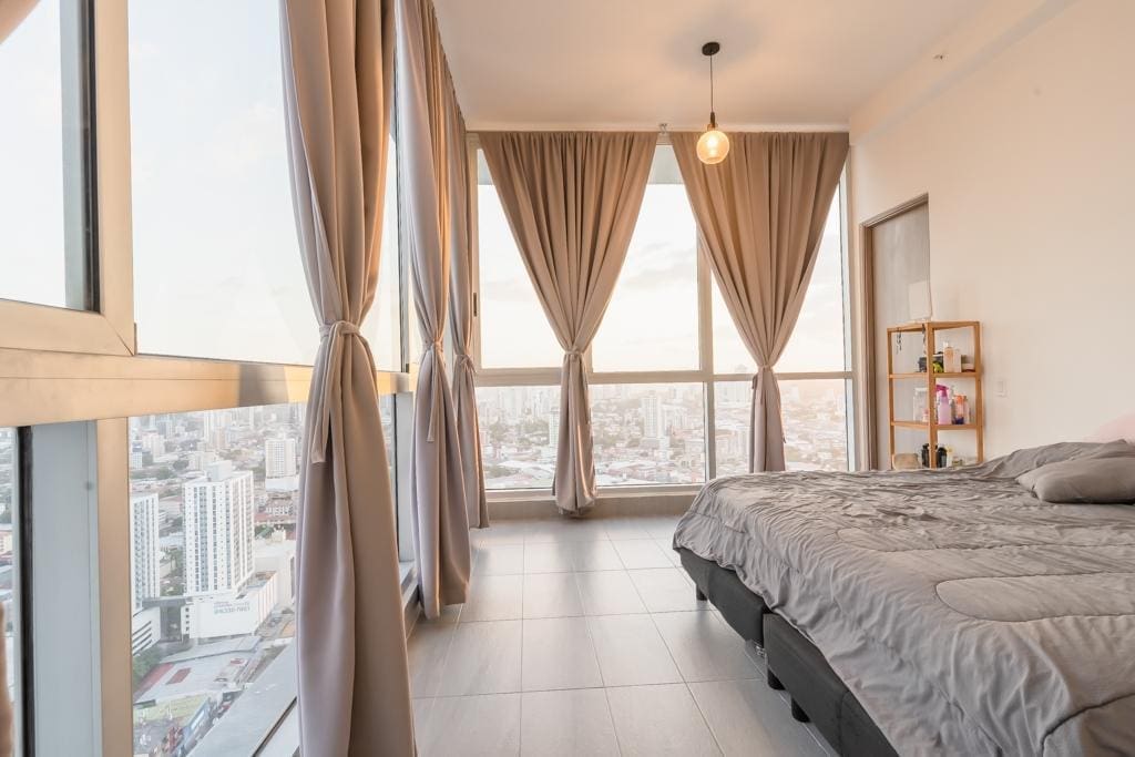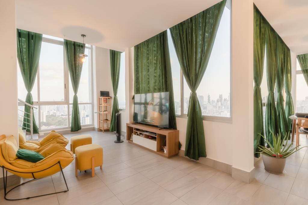 Penthouse Jr. (Loft) – último piso (piso 31), ESPECTACULAR VISTA 90° Apartamento de piso muy alto, con una vista espectacular, con ventanales piso a techo en todo el apartamento dándo la mejor iluminación natural posible, de dos pisos tipo penthouse/Loft y en el medio de la ciudad cerca de todo, ESTA es la oportunidad que estabas esperando y al mejor precio del mercado. 151 mts2 2 habitaciones 2.5 baños 2 Estacionamientos 2 Mascotas permitidas (limite 2 mascotas) PH incluye: Cine SPA y baño turco Cancha Squash Gimnasio Jacuzzi Piscinas de adulto y niños Parque infantil Garita y guardia de seguridad Gas y agua con mantenimiento ($317.10) Beneficios adicionales: * Cerca del Metro (tren) * Cerca de supermercados (Pricesmart, Super 99, Rey y Ribasmith) * Cerca de hospitales, consultorios, farmacias y laboratorios * Cerca de colegios * Cerca del Parque Omar