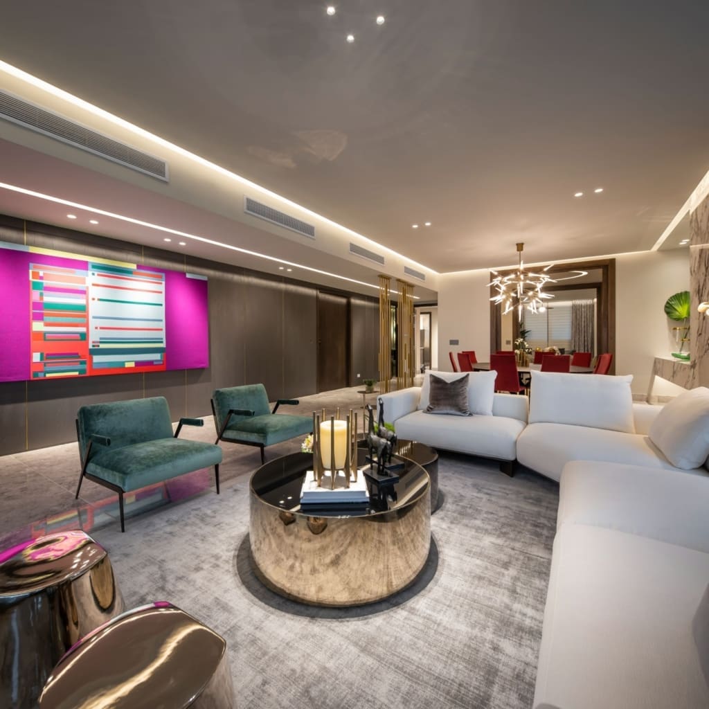 - Grand Salon: Realiza las celebraciones que marcan un hito en cada etapa de tu vida y la de tus familiares compartiendo la vista única en una cómoda zona a pasos de tu residencia.
