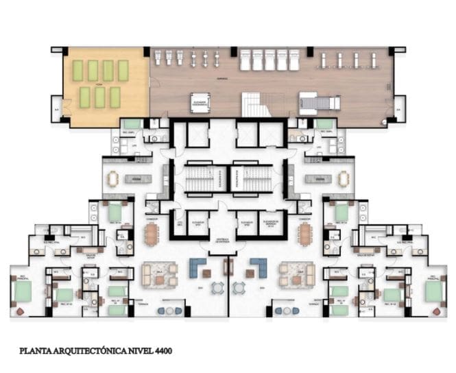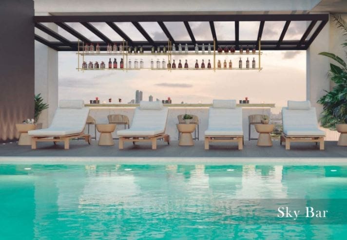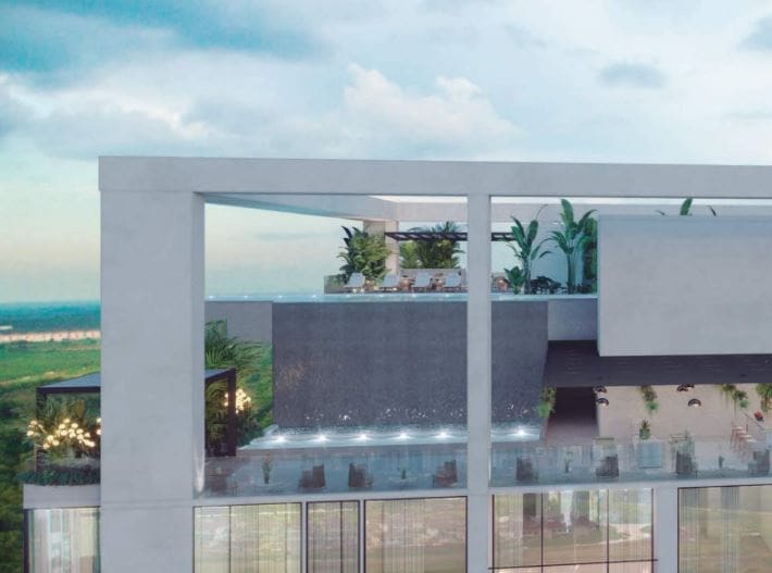 Los residentes podrán disfrutar a 144 metros de altura, un espacio de 2000m² completamente diseñado pensando en su bienestar. Con vistas al Océano Pacífico y la cancha de golf de Santa María Golf & Country Club