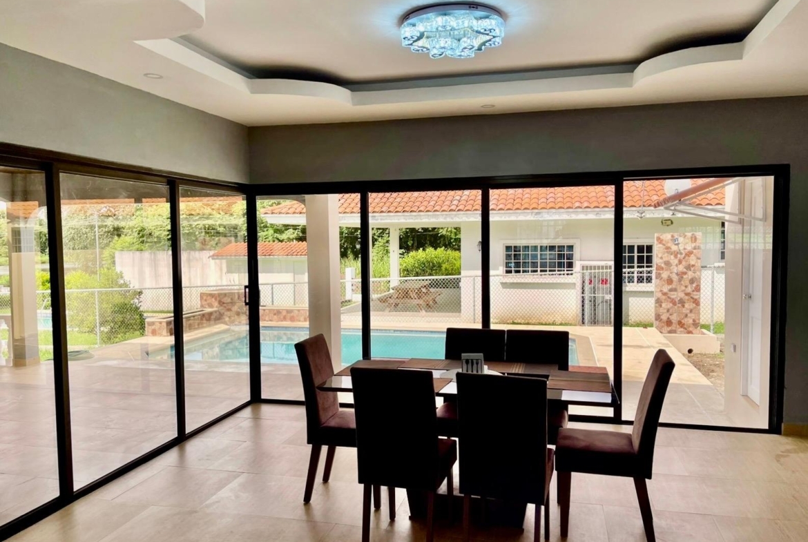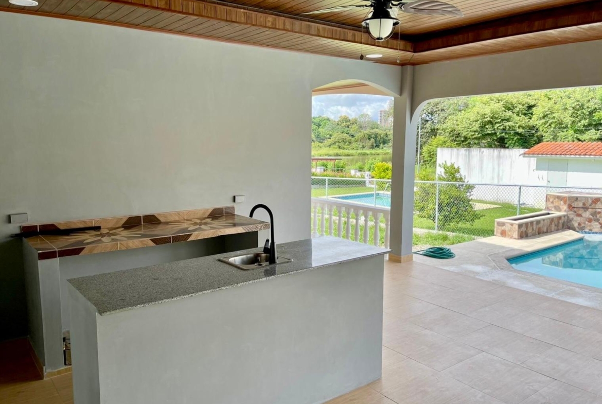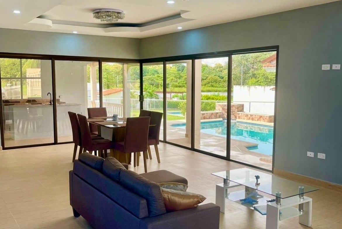 Acogedora casa en Coronado, cerca de todo. Cuenta con 4 recámaras, 2 baños, sala comedor, cocina abierta, terraza con bar, depósito, garaje techado, bohío, piscina, completamente cercada y con un amplio patio trasero.