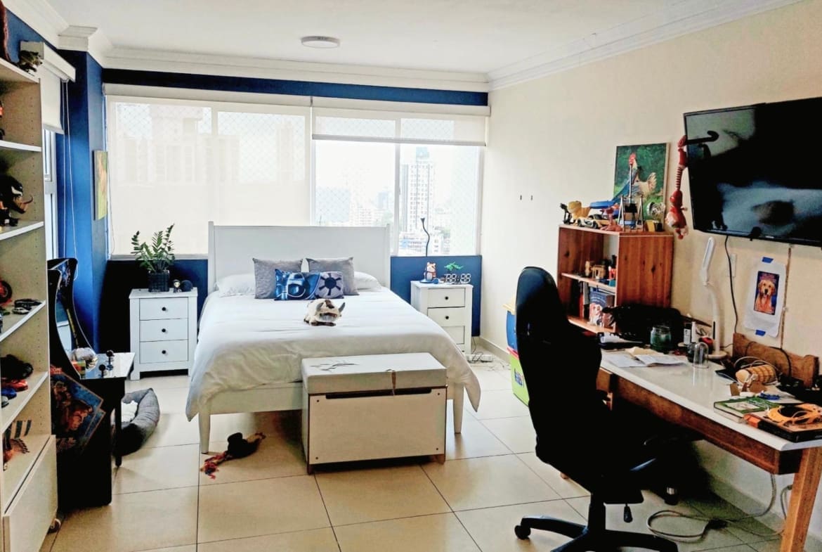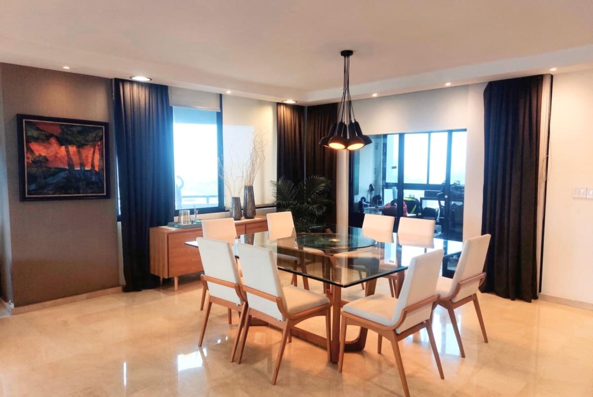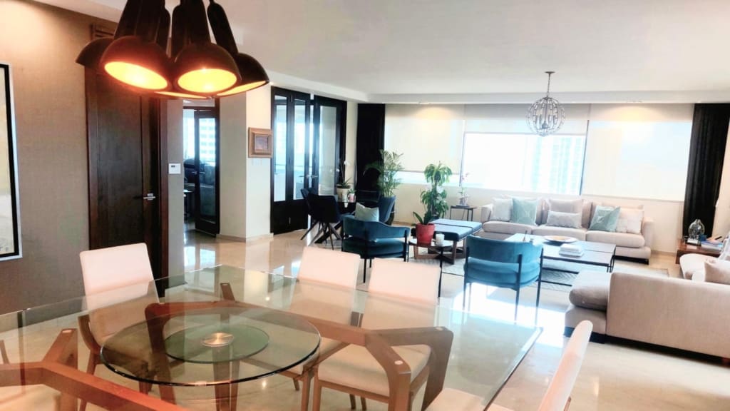 Edificio Elite ubicado en el exclusivo barrio de La Cresta, estratégicamente muy cerca de todas las comodidades de la ciudad, ofreciendo una vista espectacular en un entorno tranquilo y sin tráfico. El vecindario circundante se caracteriza por su serenidad y vegetación, creando un ambiente apacible. El apartamento en venta/alquiler cuenta con: -400 m2 de construcción. -3 recámaras. -3.5 baños. -Cocina. -Sala. -Comedor. -Lavanderia. -Cuarto y baño de servicio. -2 balcones. -A/C central. -Den. -3 estacionamientos. Además, el edifcio cuenta con las siguientes amenidades: -Elevador con llave. -Seguridad 24 horas. -Conserje. -Piscina. -Terraza. -Gimnasio. -Sala de eventos. -Tanque de agua. -Planta electrica. Precio de venta:$595,000 Mantenimiento:$800 (incluye agua y gas)