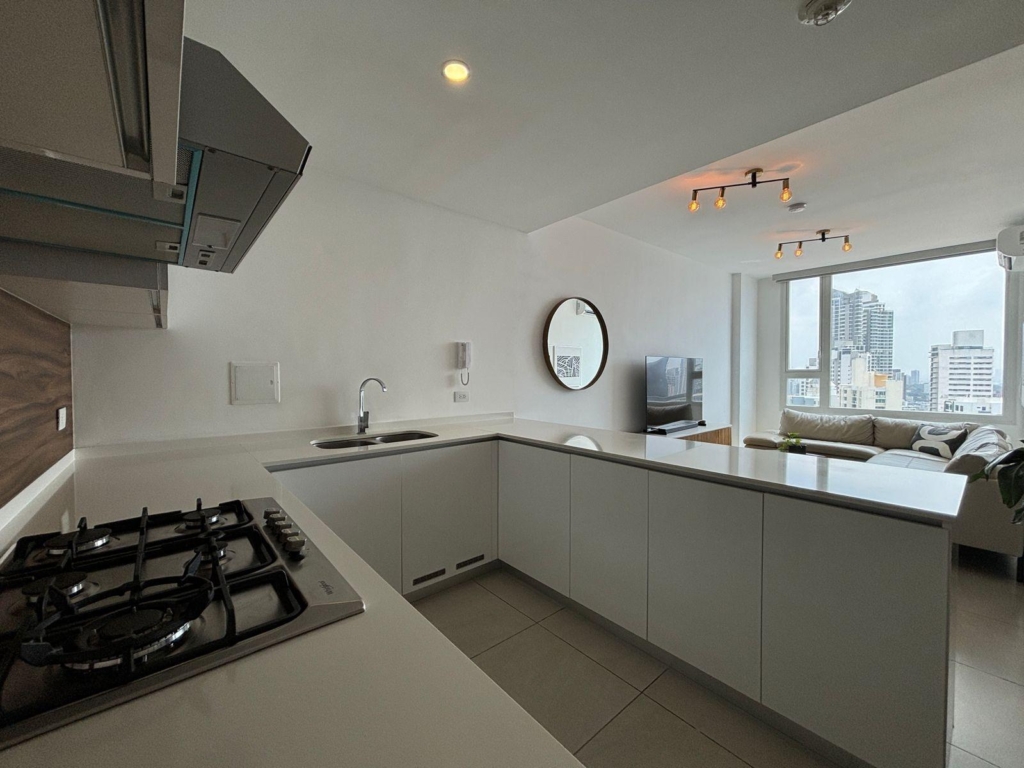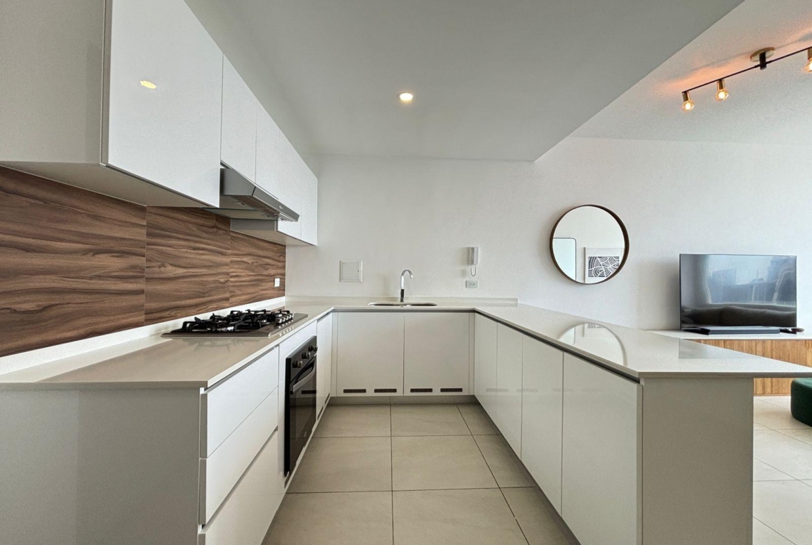 El edificio tiene una de las mejores areas sociales de la zona, piscina en colores esmeralda, gran tamaño del gimnasio, area de yoga, un piso muy espacioso para co-working con salas privadas, zoom-room privado, espacios de trabajo, zona de videojuegos, en el último piso una terraza abierta muy bien amoblada para disfrutar de los lindos atardeceres, cocina moderna muy equipada para hacer eventos, pet spa, sala infantil con excelente tamaño. El apartamento: 72m2 2 recámaras 2 baños 1 parking AMOBLADO DE REVISTA Piso alto Cocina abierta, lavandería, ventanales amplios. Excelente oportunidad sea para vivir o para inversionistas.
