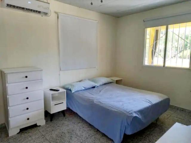 En plena via principal, de Palmar Sur en el cotizado corregimiento de El palmar, Puerto Armuelles (Al centro 10 minutos), provincia de Chiriqui. A una hora de David, A 30 minutos de la frontera Panama-Costa Rica, A 30 minutos de Punta Burica, A 1 hora del Volcan y de Boquete, a 7 minutos de una de las mejores playas del país Toda la casa así como sus recamaras cuenta con muy buena iluminación natural, por ende, super ventilada. Los dormitorios alejados del sol de la tarde Garaje techado Cuenta con 3 aires acondicionados Inverter 4 lamparas abanicos de techo Agua caliente en cocina y en baño Ventanas francesas verjadas Baño completo en la parte exterior, Bodega, fregador exterior La propiedad cuenta con agua potable, además, cuenta con un pozo de agua viva Sistema de riego empotrado, sistema de protección contra sobretensiones eléctricas Totalmente cercada La casa incluirá una cama doble, una cama individual y un refrigerador (con cocina integrada) Ideal para todo tipos de familia