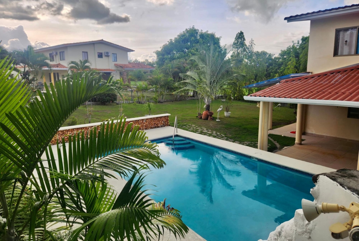 Dúplex en excelente ubicación, dentro del Club ecuestre de Coronado. Cuenta con 3 recámaras, 2.5 baños, sala, comedor, cocina abierta, amplia terraza, patio, piscina, tanque de reserva de agua, depósito, estacionamiento techado para 2 autos, completamente cercada.