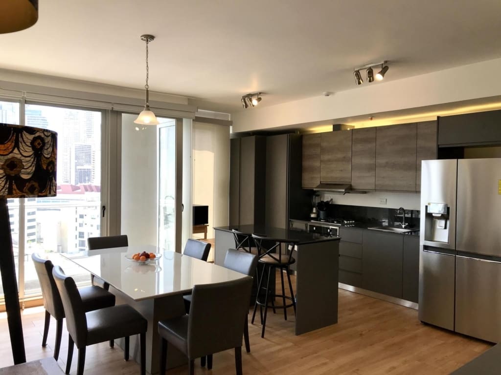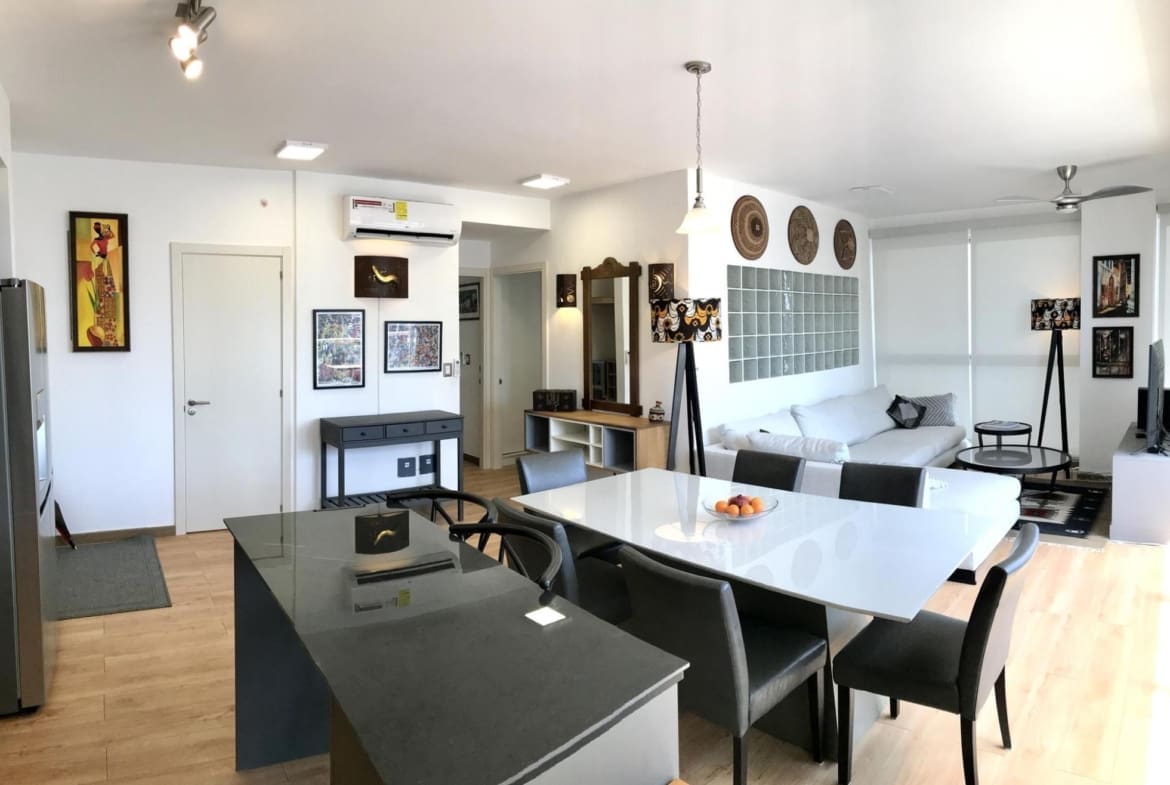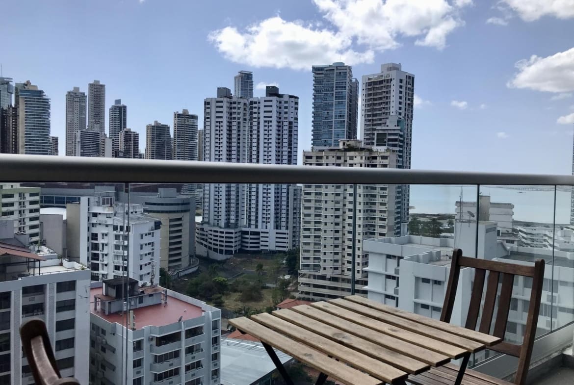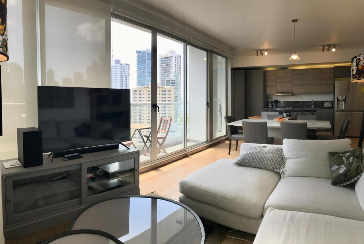 Este apartamento amoblado de dos recámaras en la nueva torre PH Boutique Quartier Marbella tiene acabados modernos y una vista panorámica del horizonte de la ciudad de Panamá. Sus residentes disfrutan del acceso a las fantásticas áreas sociales en la azotea del edificio, que incluyen una piscina tipo infinity, gimnasio, terraza y café/bar. Es uno de los pocos edificios en la Ciudad de Panamá que cuenta con la licencia otorgada por la ATP que permite alquileres a corto plazo tipo Airbnb Las características adicionales de este apartamento incluyen: – 86 m2 de construcción – Areas de sala, comedor y cocina de concepto abierto, todas con pisos laminados de madera y ventanas del piso al techo – Balcón que recorre todo el largo de la sala-comedor – Cocina full equipada con electrodomésticos de acero inoxidable – Lavandería con lavadora y secadora – Recámara principal con baño privado – Segunda recámara (actualmente habilitada como oficina con sofacama – Baño externo completo – Unidades de aire acondicionado tipo split Inverter de bajo consumo en todo el apartamento – Dos estacionamientos asignados (doble fondo) PH Boutique Quartier Marbella es un edificio bien mantenido con excelente seguridad. Ubicado en una calle lateral tranquila en Marbella, es un paseo fácil de dos cuadras al distrito bancario de la ciudad, la Avenida Balboa y el área recreativa frente al mar Cinta Costera. Hay que coordinar visitas con 24 horas de aviso.