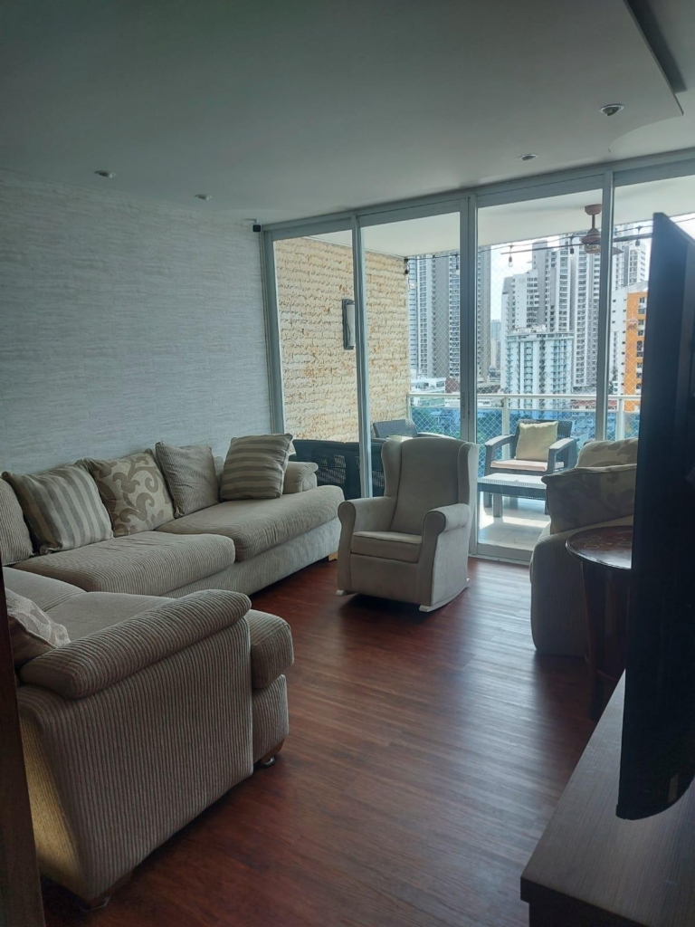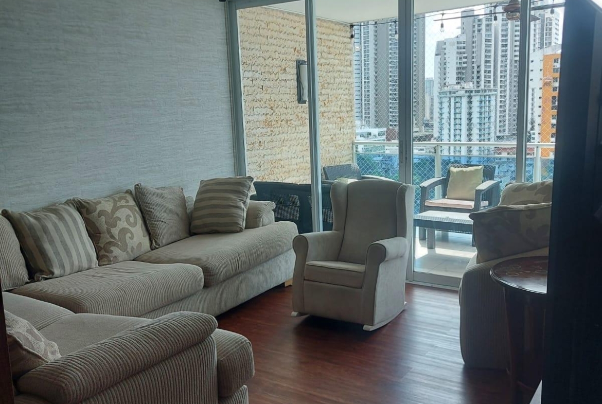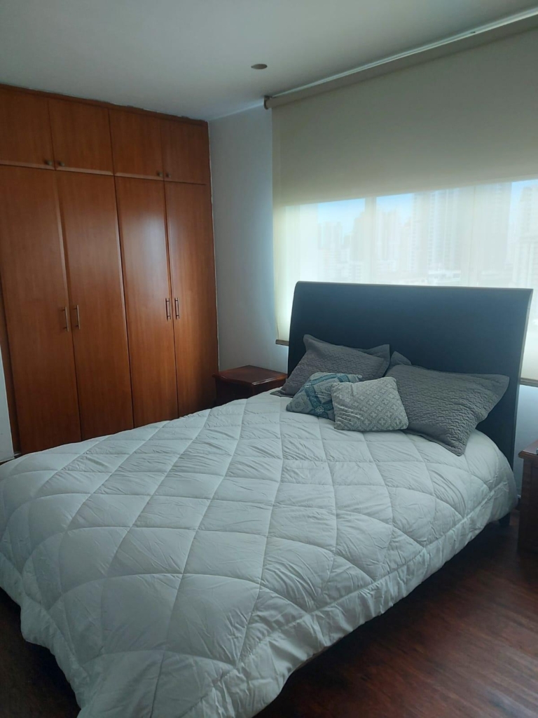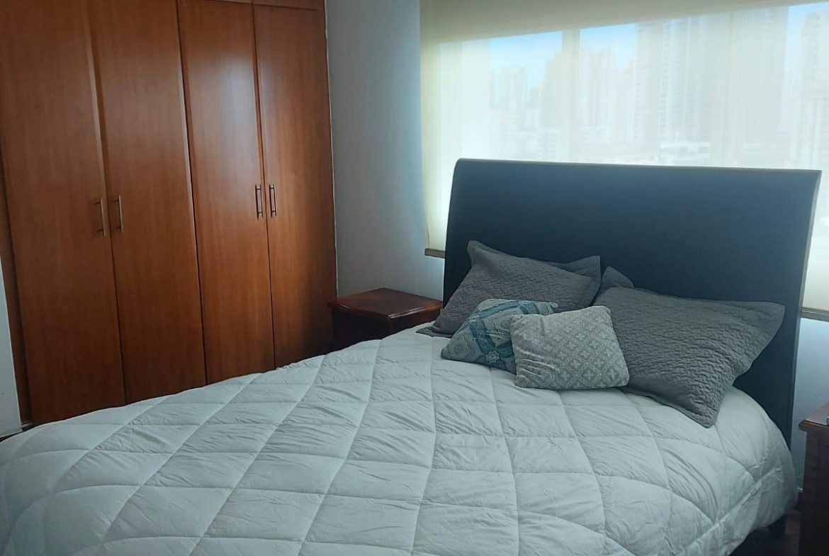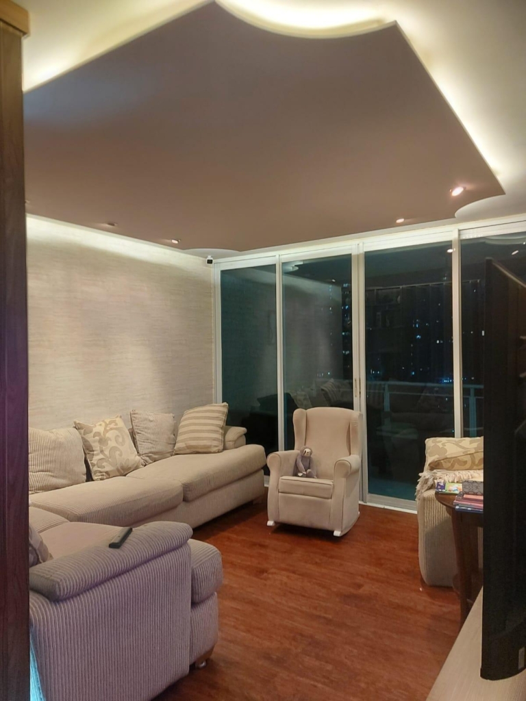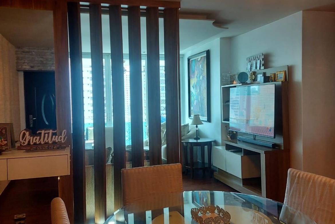 Venta de apartamento de 130m2, recámara principal con baño completo, walk in closet, dos recámaras secundarias con baño compartido completo. Sala, comedor, amplio balcón, cocina, lavandería, cuarto y baño completo de servicio. Dos estacionamientos. El apartamento tiene vista completa de 90 grados (sin edificios contiguos que obstaculicen la vista). El PH cuenta con piscina, área de juegos para niños, área de barbacoa, salón de fiesta, amplio gimnasio, saunas.