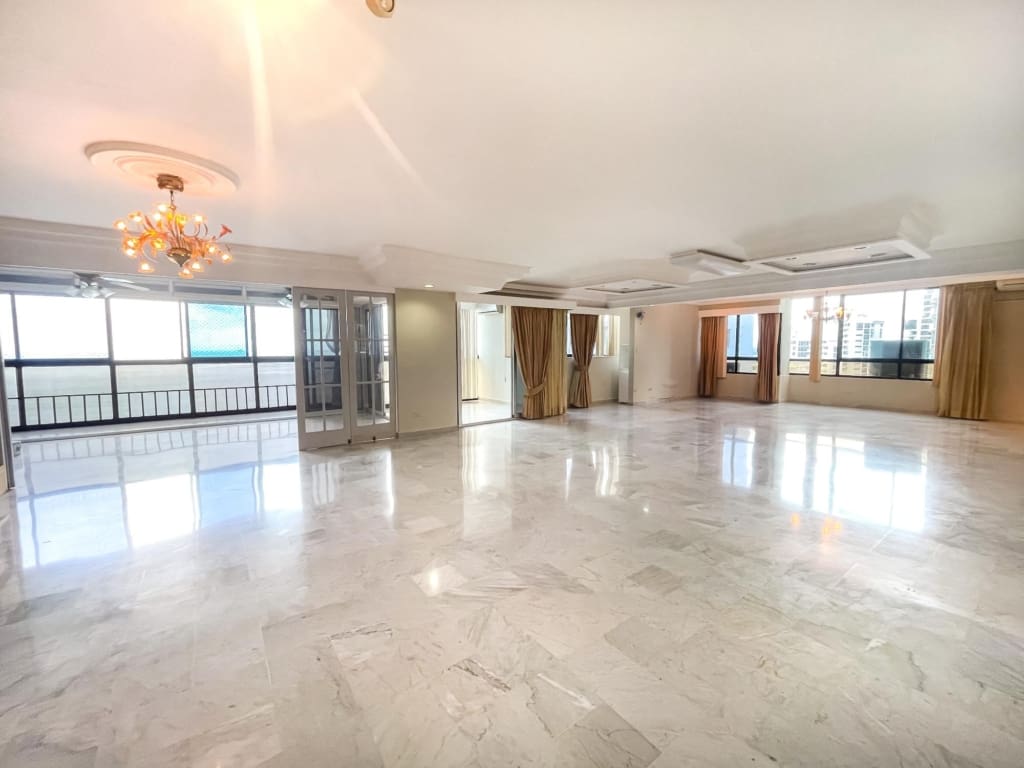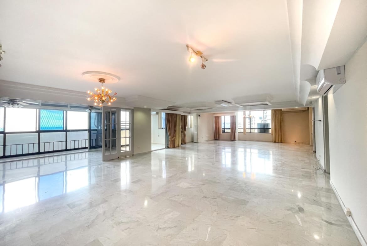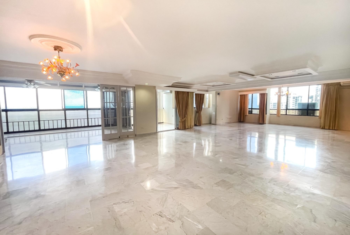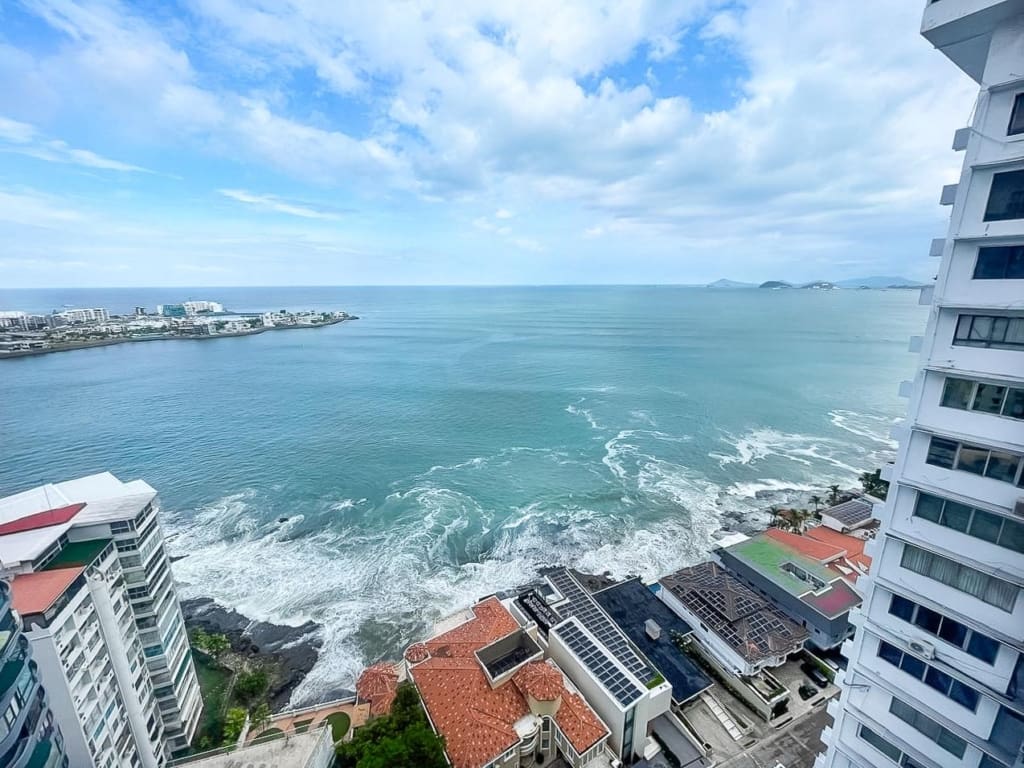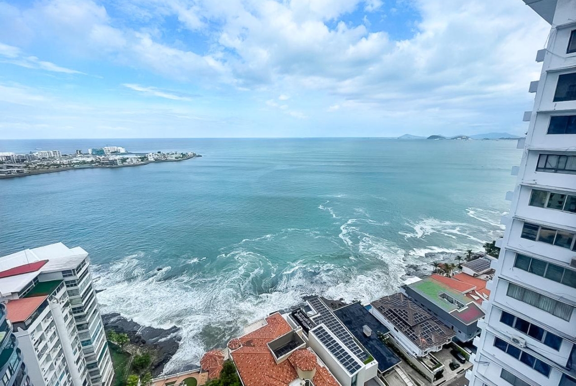 Este maravilloso y único Penthouse en PH Pacific Shore, cuenta con 5 recámaras, 5 baños completos, 1 baño de visitas, sala, balcón, comedor, cocina, lavandería, cuarto de empleada, tiene una vista de 360 grados y balcones frente al Mar, tiene un potencial increíble para que el mismo sea remodelado y quede un super apartamento.