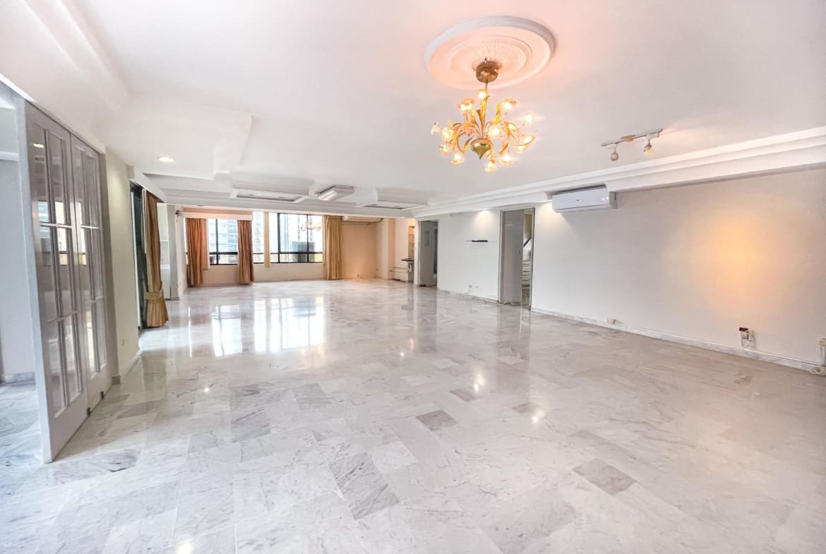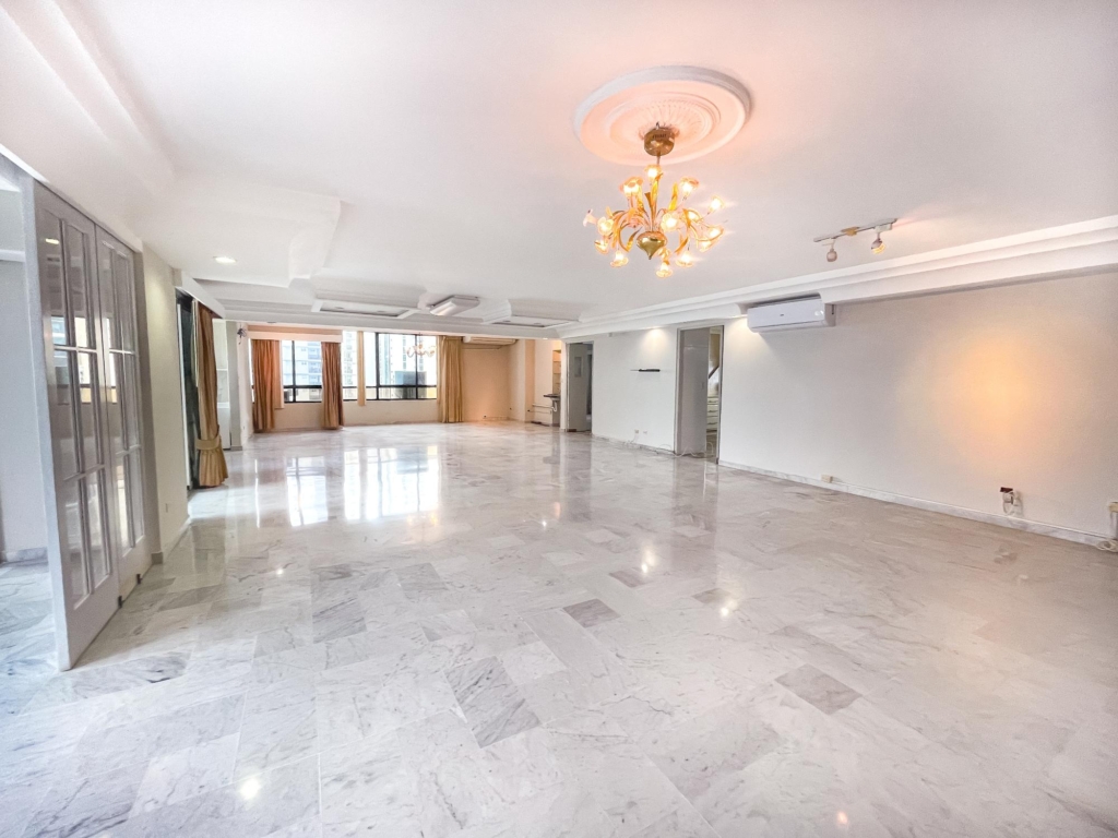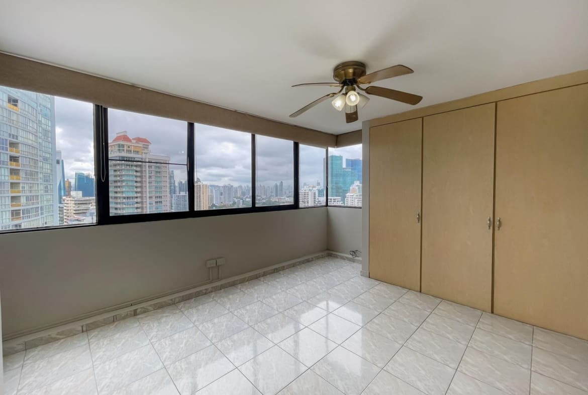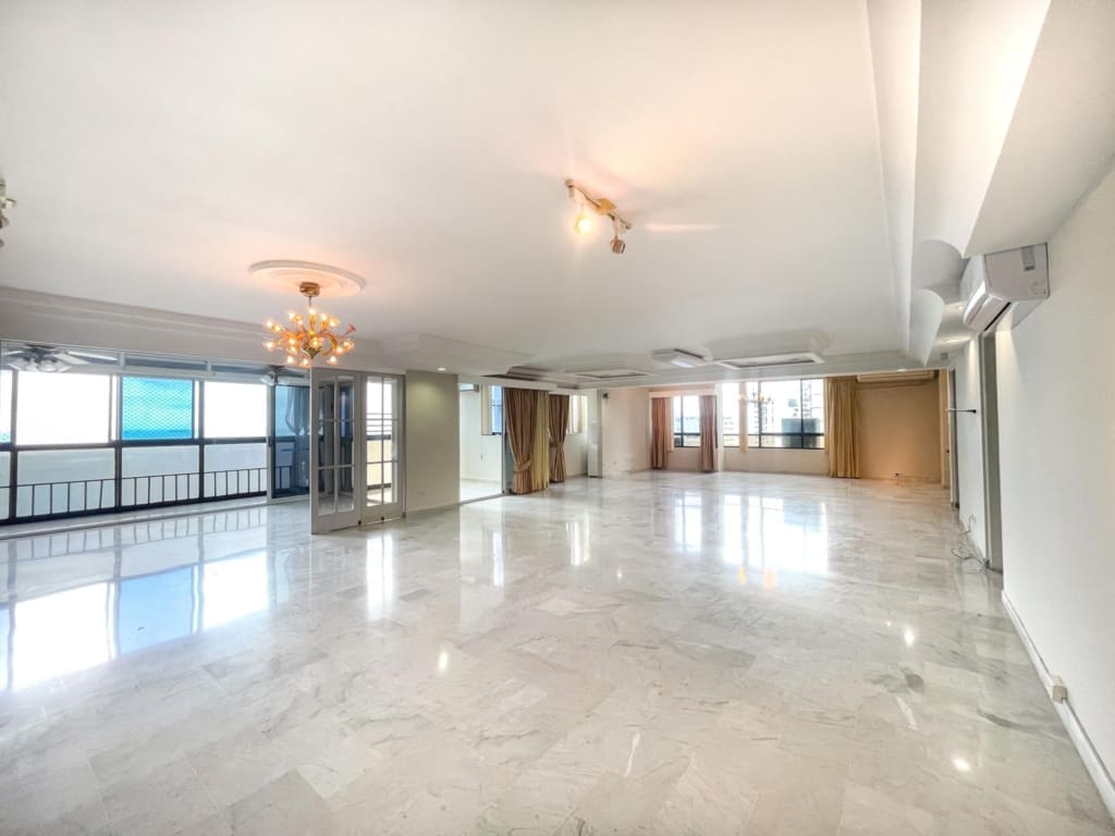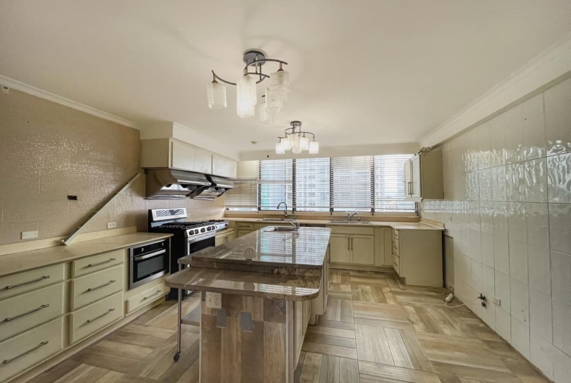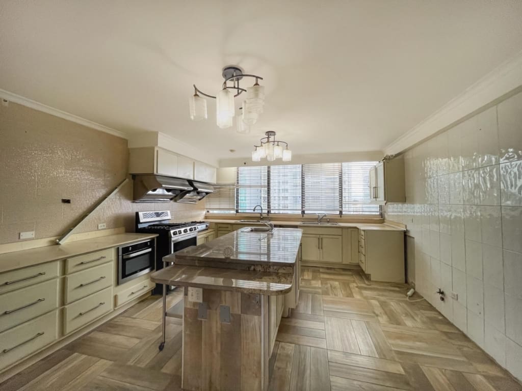 Este maravilloso y único Penthouse en PH Pacific Shore, cuenta con 5 recámaras, 5 baños completos, 1 baño de visitas, sala, balcón, comedor, cocina, lavandería, cuarto de empleada, tiene una vista de 360 grados y balcones frente al Mar, tiene un potencial increíble para que el mismo sea remodelado y quede un super apartamento.