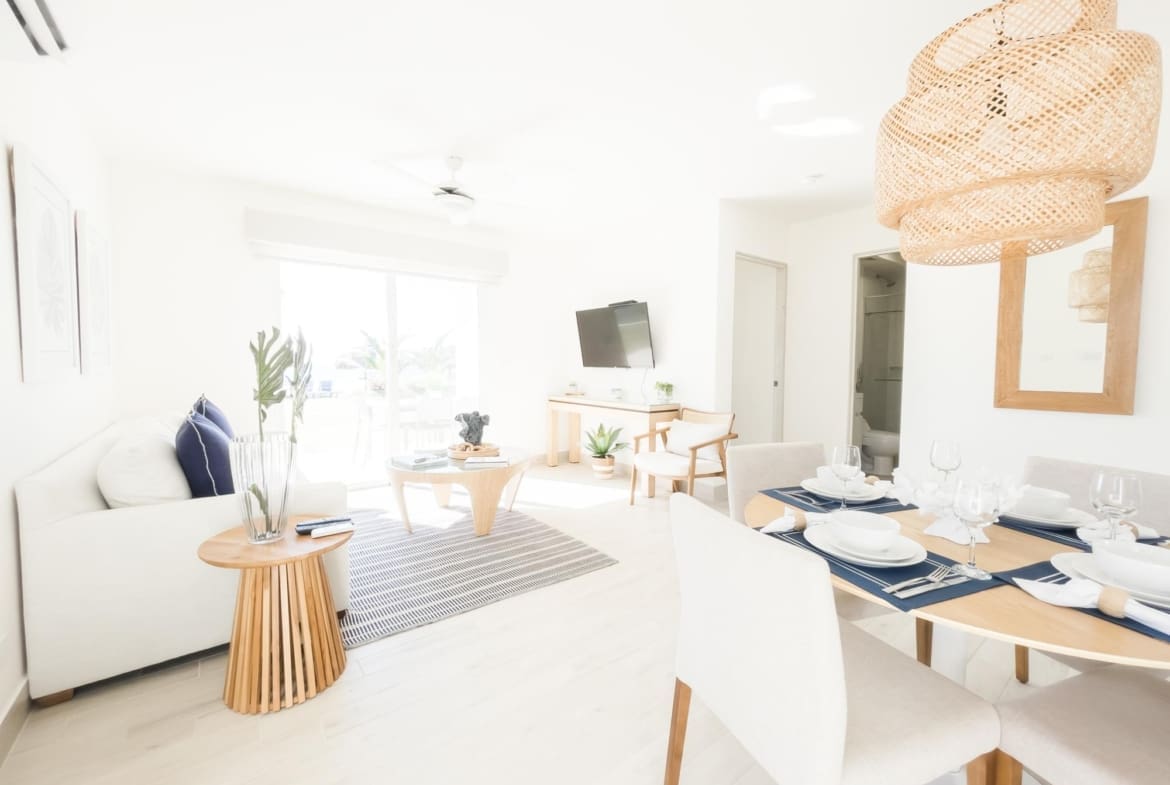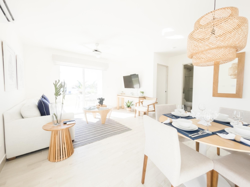 Apartamento en Playa Caracol Residences, frente al mar y amoblado cuenta con: 2 habitaciones, 2 baños, sala-comedor, cocina, terraza. Al encontrarse en planta baja este apartamento se vuelve ideal para el disfrute de todos los miembros de la familia, permitiendo desde su terraza privada disfrutar de un hermoso jardín y de el privilegio y cercanía al mar que representa vivir en este increíble apartamento. Playa Caracol es un complejo cerrado que ofrece a sus residentes la tranquilidad de vivir frente al mar en propiedades totalmente modernas. Podrás disfrutar de: más de 1 km de playa, piscina, club de playa, restaurantes, clases de surf, rampa de patinetas, gazebos bbq. Sin dejar de lado su cercanía a supermercados, centros comerciales, restaurantes y a la clínica San Fernando Coronado. Todo el proyecto está pensando para ti y tu familia.