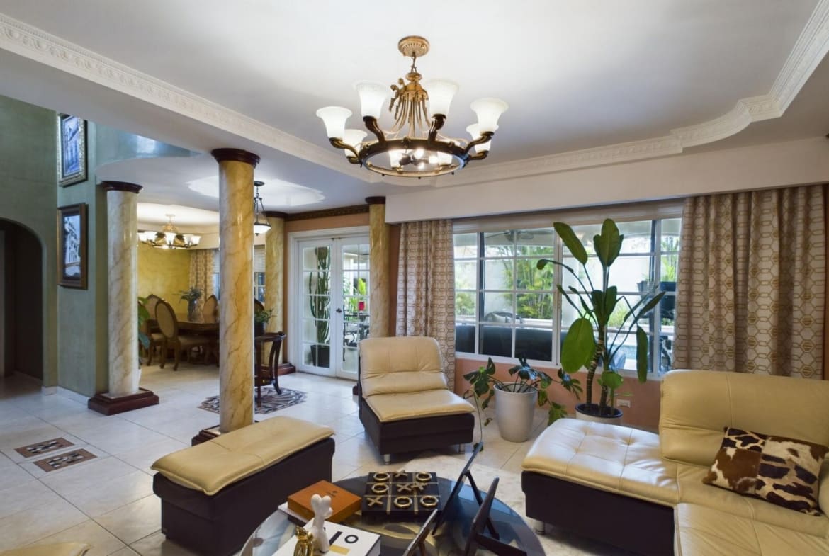 La casa a la venta es una impresionante residencia de cuatro habitaciones, ubicada en un complejo residencial en la exclusiva zona de Costa del Este, con una amplia puerta cochera para que estaciones tus vehículos de manera segura. Al entrar en la casa, se es recibido por una espaciosa área social que fluye a través de la sala y el comedor. La decoración elegante, junto con la iluminación ambiental y doble altura, crean un ambiente cálido y acogedor. También existe un espacio privado de oficina y una sala adicional de entretenimiento con mesa de billar y sala de cine. La cocina ha sido remodelada y cuenta con electrodomésticos de alta gama VIKING, y un cómodo desayunador con vista al jardín y con conexión a la terraza. Las habitaciones se encuentran en el segundo nivel con una cómoda sala familiar en el centro. Todas las habitaciones tienen ventanas amplias que ofrecen vistas espectaculares del complejo residencial. La propiedad cuenta con una increíble área de entretenimiento al aire libre. La terraza tiene un área de bar con una sala externa y la piscina de gran tamaño es un oasis privado. La zona de barbacoa cuenta con una nevera para mantener las bebidas frías mientras se prepara la comida. Es el lugar perfecto para disfrutar de una comida al aire libre con familiares y amigos. En resumen, una verdadera joya de casa. Con cuatro habitaciones, sala, comedor, estudio, cuarto de entretenimiento, cuarto/baño de empleada, piscina, área de barbacoa, cocina remodelada con electrodomésticos de alta gama y amplia puerta cochera, es el hogar ideal para aquellos que buscan un estilo de vida cómodo, lujoso y privado.