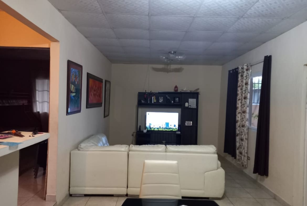 La vivienda esta ubicada a unos 500 metros de la Ave. José Domingo Diaz, con acceso a transporte y muy cerca del Centro Comercial Los Pueblos, como tambien con acceso al Corredor Sur. La misma cuenta con 3 recamaras, 2 baños, Sala y Comedor, Cocina abierta con su desayunador, área de lavandería techada, garaje para 3 autos bajo techo y con verjas de seguridad. También tiene un área abierta bajo techo que funcionaria para una amplia terraza posterior.