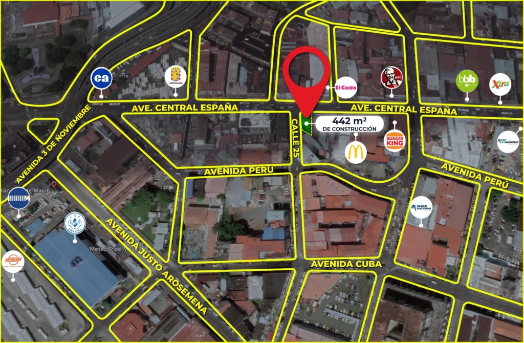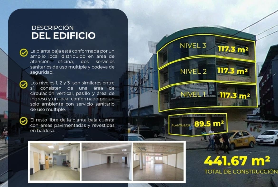 Se vende edificio comercial con ubicación estratégica en el corazón de Calidonia, frente a la Ave. Central, a pocos metros de la estación del metro. Este edificio cuenta con 3 amplios pisos ideales para oficinas o locales comerciales y planta baja. Está construido en esquina, lo que le da una mayor exposición. Ideal para desarrollar negocios pues está ubicado en una calle que es considerada centro del comercio.
