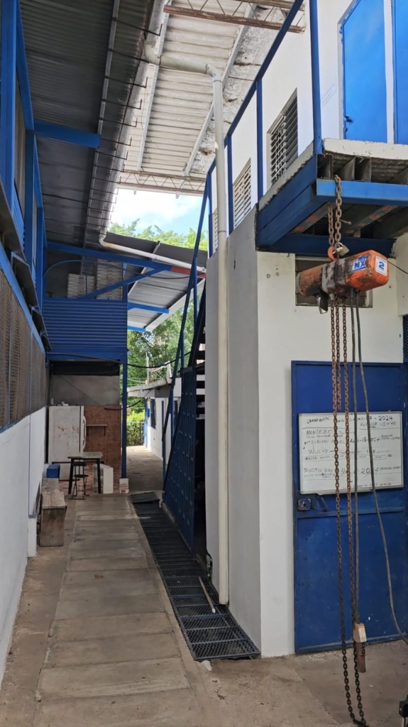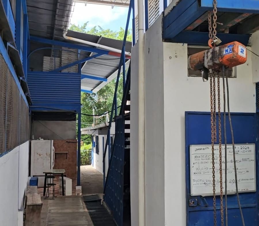 Depósitos: conformado por dos plantas. En el exterior consta de escaleras para el acceso del nivel superior. Sus acabados son piso de concreto rústico, paredes de bloques con repello liso, ventanas de vidrio tipo persianas con verjas de hierro; puertas de metal en ángulo de metal; losa de metaldeck con estructura vista en planta baja y techo de láminas de zinc galvanizado en planta alta y aislante.