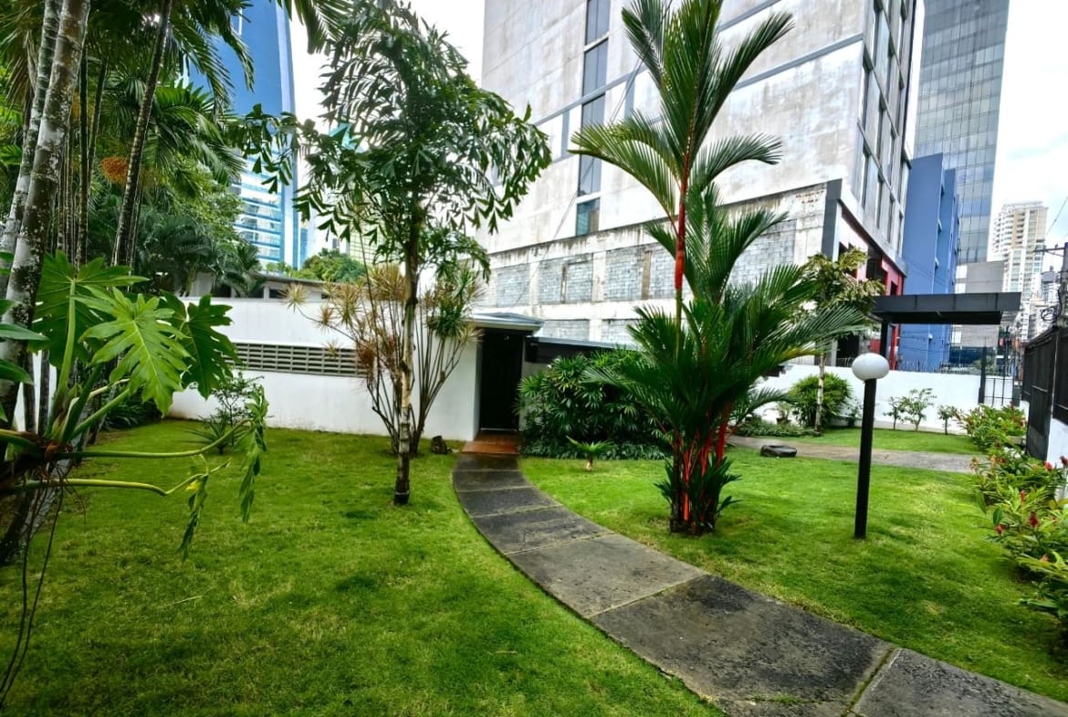 Ubicada en pleno corazón de Obarrio, a solo unos pasos de la prestigiosa Calle 50, esta propiedad es una joya arquitectónica diseñada por el renombrado arquitecto panameño Calvin Stempel en 1955, al estilo Mid Century. Rodeada de exuberantes jardines, la casa ofrece un diseño vanguardista que fusiona la naturaleza con espacios luminosos, creando una armonía única tanto en su interior como en sus áreas exteriores. Para aquellos que aprecian la historia y la estructura original, esta casa de dos plantas, impecablemente conservada, presenta una oportunidad excepcional. Podría transformarse en un restaurante de autor acogedor y cálido, aprovechando su amplio jardín frontal para hasta 8 estacionamientos. Además, la proximidad a un estacionamiento público justo enfrente facilita la recepción de más vehículos. El terreno cuenta con zonificación RM3-C2, permitiendo construcciones de alta densidad en altura y áreas comerciales. Esta versatilidad ofrece un sinfín de posibilidades para proyectos residenciales o comerciales de vanguardia. No deje pasar la oportunidad de adquirir esta propiedad única, perfectamente ubicada para impulsar su negocio o llevar a cabo su proyecto residencial de ensueño.