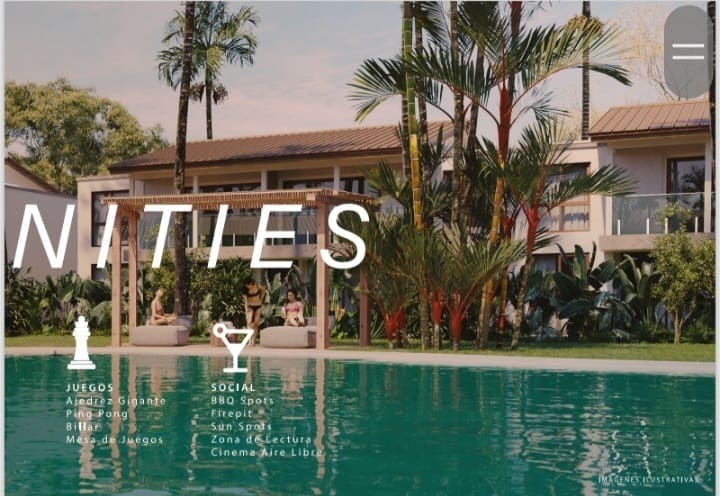 El proyecto cuenta con amplias áreas sociales y amenidades como piscina, zonas BBQ, parque de mascotas, gimnasio exterior, cancha de voleibol de playa, cine al aire libre, áreas de lectura y espacios recreativos.