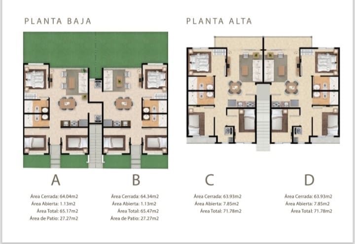 Las unidades ofrecen opciones de 2 y 3 recámaras, con 2 baños completos, distribuciones funcionales y áreas desde aproximadamente 42 m² más patios privados, ideales tanto para uso residencial como inversión.