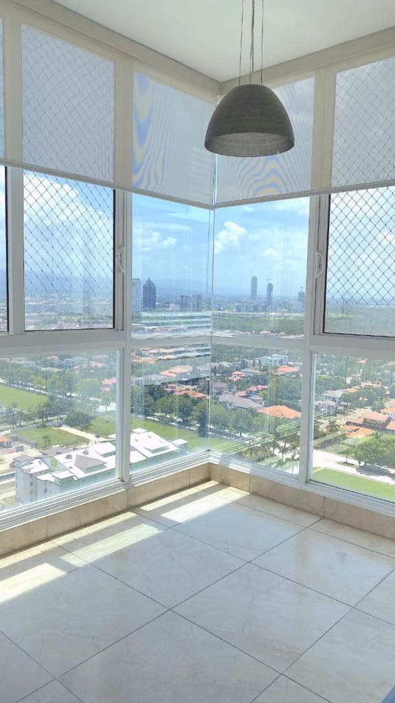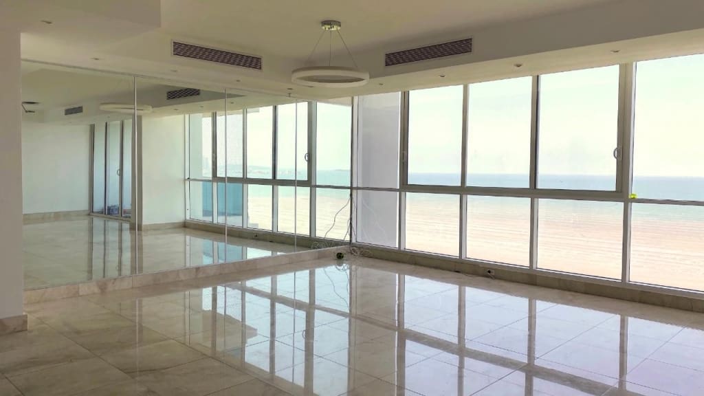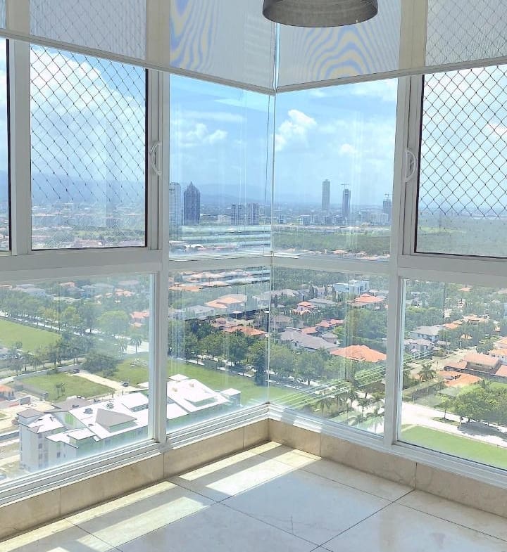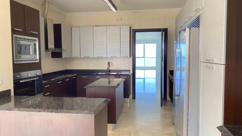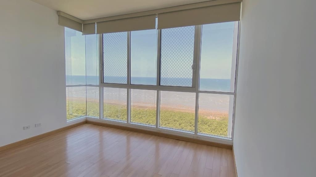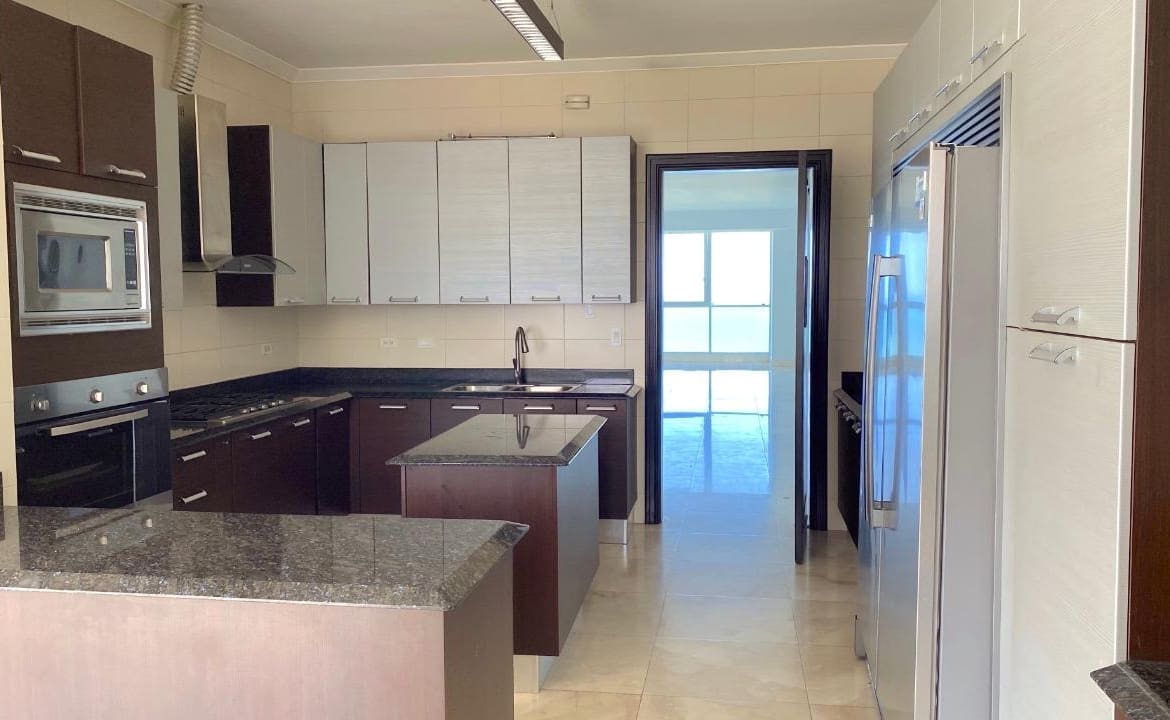 Hermoso y amplio apartamento con vista al mar y a la ciudad. Todas las habitaciones tienen su walk-in closet y baño. Cuenta con sala, comedor, den, balcón, cocina con desayunador, lavandería, y cuarto y baño de empleada, dos estacionamientos y dos depósitos. Incluye línea blanca y aires. El área social cuenta con piscina, mini soccer , sala de juegos, juego de niños, squach, sala de trabajo, gimmasio y más.
