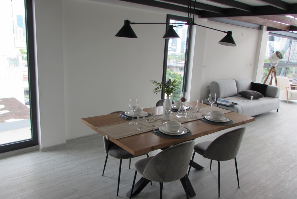 Pensando en Panamá, en su clima y en su gente aportando un estilo inspirado en New York, con diseño Europeo, con materiales técnicos como los vidrios insolados y el metal estructural a la vista y con toques rústicos y naturales con maderas y alfombra.