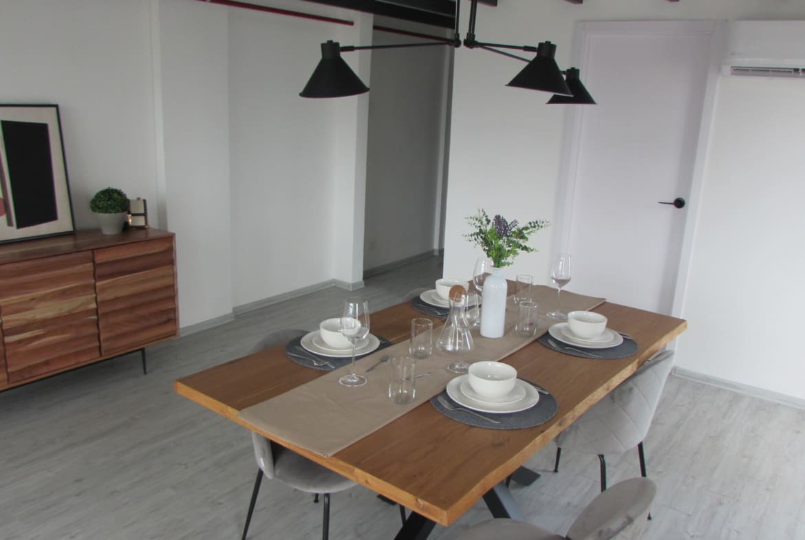 Recepción en el lobby, co-cooking para llevar a tus invitados, totalmente equipada y con una mesa hasta para 14 personas, co-grilling, co-living (billar, biblioteca, pool, self buffet)